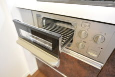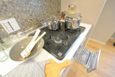コンロは二口、グリルも付いています。今は電子レンジなどを使ったレシピも多く、組み合わせれば何でも作れそうですね。