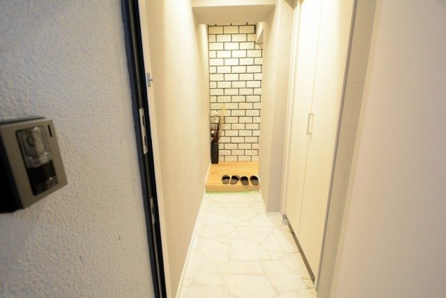 玄関を開けると、生まれ変わったばかりのキレイなお部屋が出迎えてくれました☆玄関はちょっと狭めでしょうか。