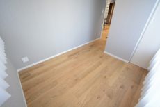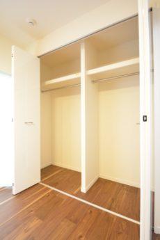 木目を生かしたフローリングがLDKから続いていて、ナチュラルな雰囲気。収納はお部屋の幅いっぱいを使った大きなクローゼットが付いています。間口が広くてとても使いやすそうですね。