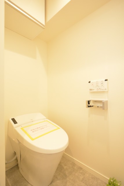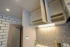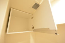 吊戸棚もついているのでトイレットペーパー等の消耗品やお掃除グッズなどはこちらにしまっておくことが出来ます。