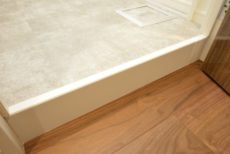 その隣のドアは洗面室。少し段差がありますのでお気を付け下さい。