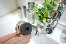 水栓はシャワーヘッドになっているので、ここで洗髪することも可能です。
