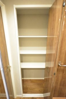 棚等は設置されていませんので、後から棚を設置したり、突っ張り棒で収納を作ったりと工夫したいですね(*´∀`*)