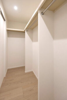 独立性が高く、洋室の中でも一番大きいことからメインベッドルームにオススメ。南東、南西向きの窓があり明るいお部屋です。収納はウォークインクローゼット!!!L字型にハンガーポールが設置された大きな収納で、衣類以外にもスーツケースや季節もの家電などの嵩張るものを入れておくこともできそうです。