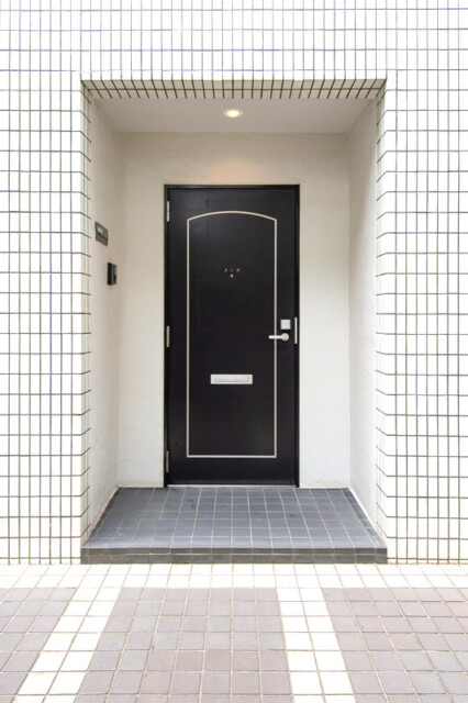パティオに面した玄関は、プライバシーに配慮したアルコーブ付き。アルコーブ内にはテレビモニター付きインターフォンが設置されていて、室内からでも玄関前の様子を確認することが可能です。お料理中などちょっと手が離せない時には嬉しいですよね。