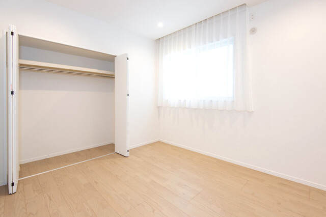 南西向きの窓があるお部屋です。今までのお部屋と同様シンプルな内装なので、カーテンや家具などコーディネートもしやすそうですね。クローゼットは間口が広いタイプ。使い勝手ならウォークインクローゼットにも負けていませんよ。