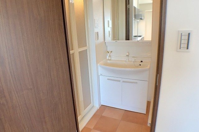 ドアを開けると洗面室になっています (・`ω´・ ○)