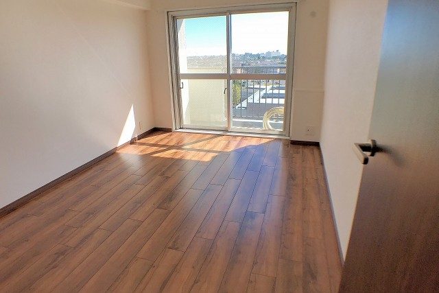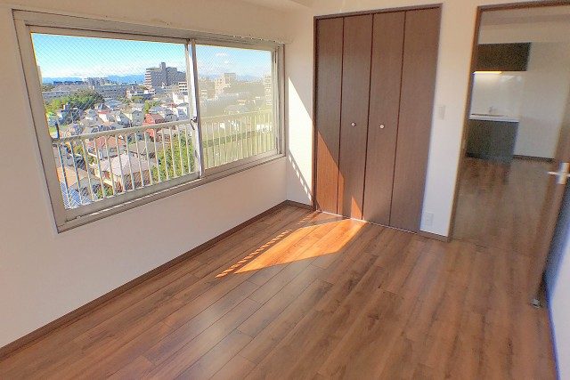 残りの洋室も約6.0帖。壁面の一部にはやわらかい色合いのアクセントクロスが使われています。 南向きで陽当たりも◎。