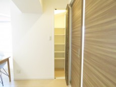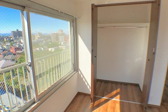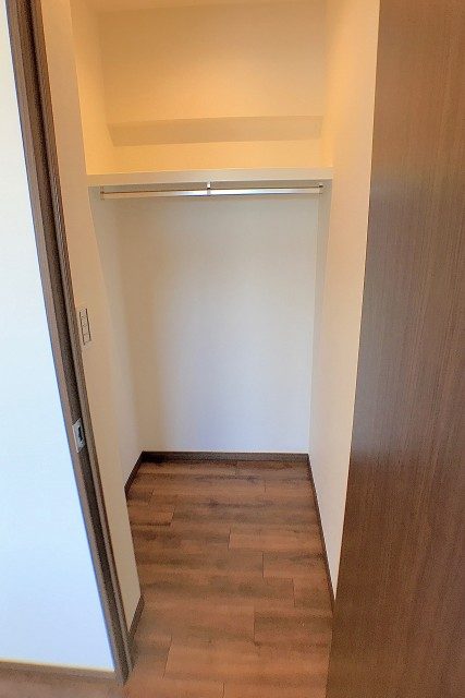 こちらのお部屋にもL字型に枕棚とポールがついたクローゼットがついています。