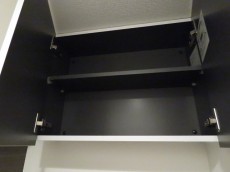 開き戸タイプの収納はデッドスペースが生まれやすいので、引き出しラックや100均のカゴ等を上手く利用して無駄のない空間づくりを目指してくださいねヾ(*´∀`*)ノ