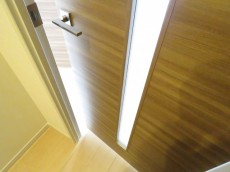 さっそく中へ。 玄関には人感センサーがついており、人の出入りを察知して自動で照明が点灯&消灯します。消し忘れがなく経済的なうえ、スイッチを押す手間が省けて便利です。