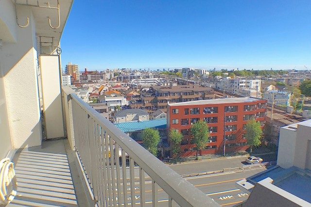 真正面は建物が建っていますが、東方向はこんな感じで環八が見えます。バルコニーに出れば車の走行音はそれなりにしますが、扉をしめれば室内は静かです。気になった方はゼヒ現地でご確認されることをおすすめいたします。