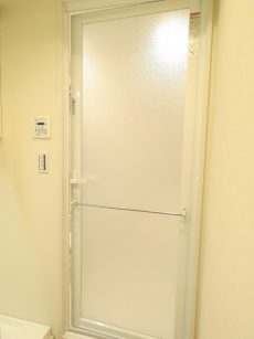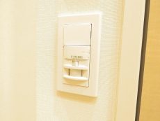 バスルームの扉の横には浴室換気乾燥機の操作パネルがついています。冷える季節は暖房機能を使えばヒートショックも防げますよ。