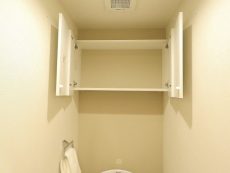 ペーパーや掃除道具の保管に便利な吊戸棚がついています。