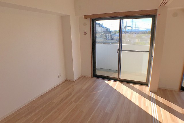 リビング横のベッドルーム。こちらも南向きで明るい日差しが差し込みます。