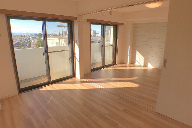 遮る建物がほとんどなく、晴れた日には富士山も望める南向きのバルコニー。