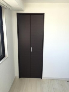 リビングダイニングに入ってすぐのところにクローゼットがあります。内部は天井までの収納スペースです。収納が大きいと生活スペースが広く使えて◎