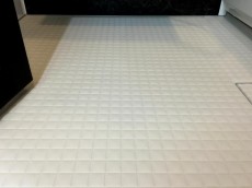 ミラー横にシャンプーなどのボトルもキレイに並べて置ける棚があります。モザイクパターンの床は、すばやく乾燥、楽々お手入れ♪♪