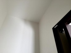 廊下を進んで、左手の洋室です。広さは約8帖。北側、東側の二面採光でとても明るいお部屋です。ベットルームになるお部屋でしょうか。広いお部屋ですが、一部大きな柱が飛び出している部分があります。