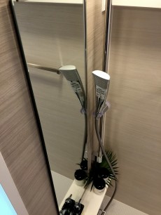鏡の裏はたくさんポケットのついた収納になっていて、細かいもので溢れがちな洗面周りがスッキリ片付いて便利です♪シャワーヘッドも嬉しいです♪♪