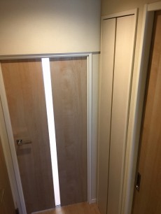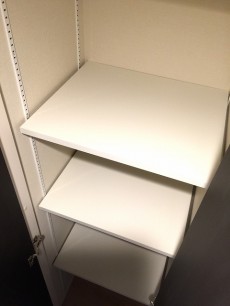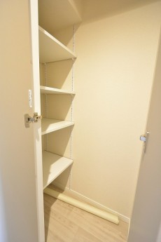 廊下に戻って、お隣には扉付き可動式の棚の収納があります。収納が多いと生活スペースが大きくとれて嬉しいです(´∀`*)