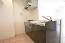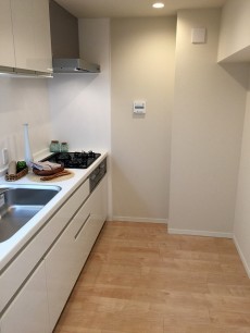 キッチンは独立タイプで広々としていて、冷蔵庫以外にもキャビネットなども置けそうなスペースがあります。