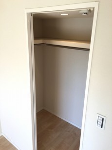 こちらのお部屋にはウォークインクローゼットがあります!!上部には棚があったりで、大きなものから小さなものまでたっぷり収納できちゃいます☆照明も付いています。