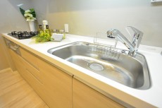 浄水器付きのシステムキッチンが収納もバッチリ