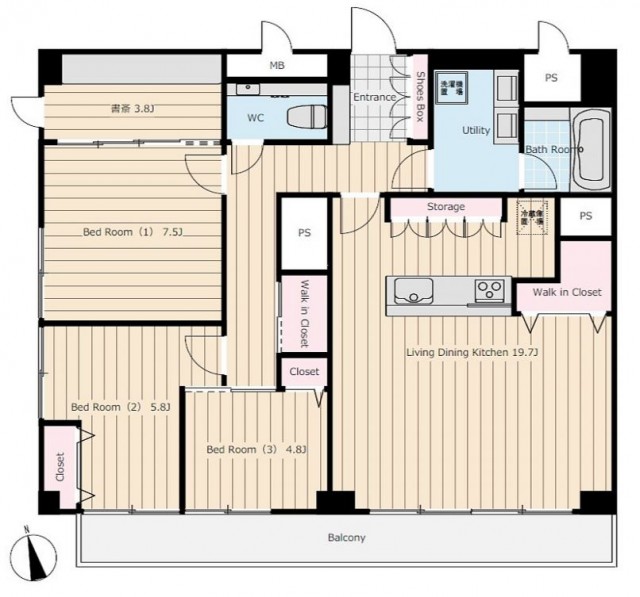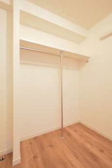 LDKには奥行きのあるクローゼットと可動棚の収納スペースがあります。