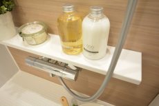 タンクレスタイプのトイレで吊戸棚や手洗い場など機能的です。