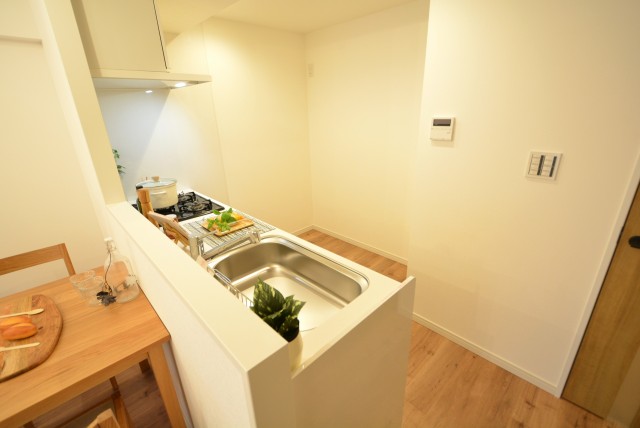 大きな冷蔵庫を置けそうなスペースで、ちょっとしたカウンターなども置けそうです。