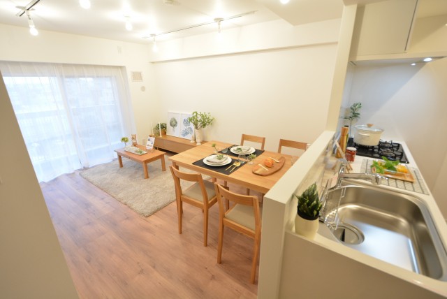 家具などは付いていませんが、置いてあると生活のイメージがし易くて助かります。大きさや色、素材感などいろいろ参考になりますしね(^^)