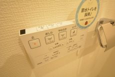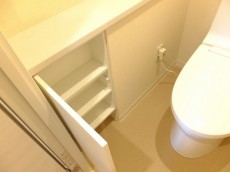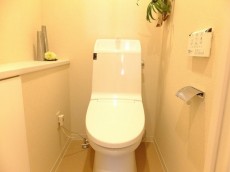 もちろんウォシュレットタイプで縦長の吊戸棚も設置されているので、トイレットペーパーなどのストックに重宝します。