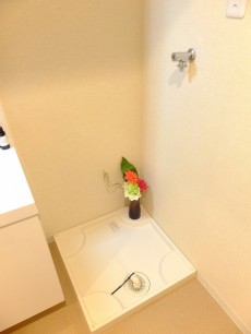 洗面台はシンクの両サイドに小さいですがカウンターがありますので、観葉植物を置いたり、お化粧道具を置いたり、いろいろと便利にお使い頂けます(*^^)v