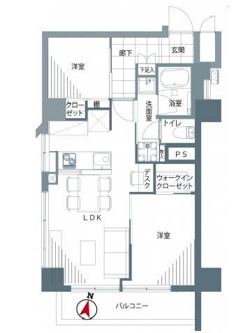 今回のお部屋は4階、間取りは2LDK、専有面積は51.39㎡となります。