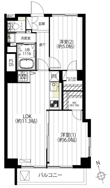 こちらが約11.3帖のリビング・ダイニング・キッチンとなります。
