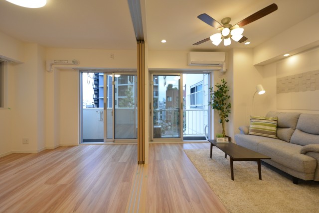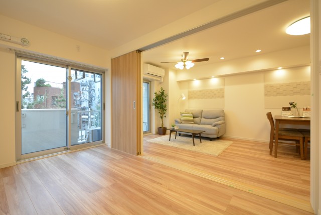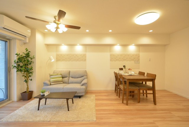 ■その他・・・フローリング貼替、建具・玄関収納交換、壁・天井クロス貼替、フロアタイル貼替、クッションフロア貼替、給湯器新規設置、エアコン(1基)、新規照明器具取付、収納棚新設、スイッチ・コンセント交換、ハウスクリーニング