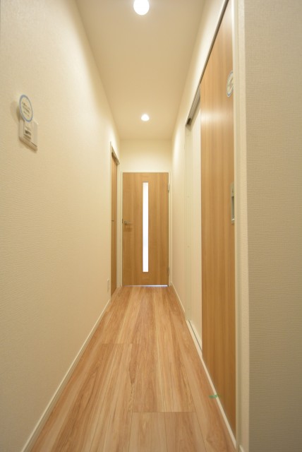 玄関ドアを開けると、落ち着いた雰囲気の廊下が真っ直ぐ伸びていました。