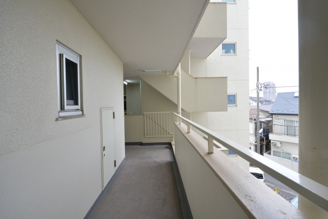 東向きの窓の外にはお隣のバルコニーや方南通りが見えます。