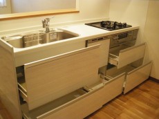 他には食器洗浄機やカウンター棚、シンク下の収納は引き出しタイプになっていたりと至れり尽くせりです。