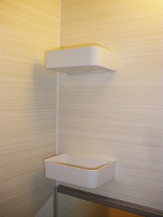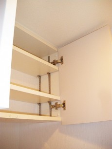 ウォシュレット付トイレの上部にも吊戸棚。こちらの棚板も可動式です。