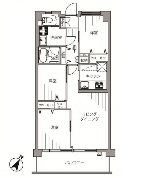 それでは、間取りのご紹介です。3LDK、57.35㎡。南東向き陽当り良好♪♪