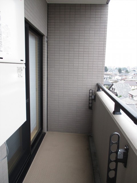 最後にバルコニーへ出てみます。ダイニングと約6帖の和室から出入りするバルコニー。南向きで6.81㎡です。陽当りの良い南向きですので、お洗濯はすぐに乾きそうです(笑)