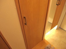 右側にはシューズボックスがあります。姿見もあって、お出かけ前には身だしなみチェックを玄関ですることができます☆
