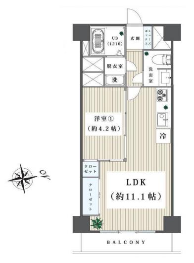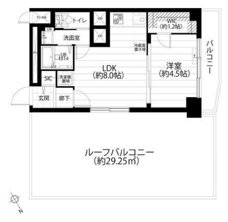 それでは間取りのご紹介です。1LDK、45.00㎡。4階。