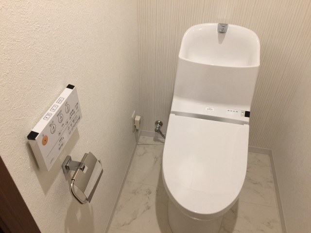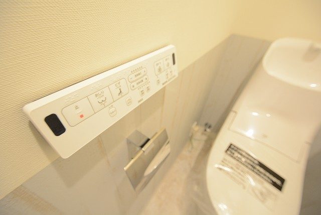 モチのロンでウォシュレット機能付きです。TOTOの最新の機種なので、節水・節電に優れています。昔のトイレと比べると70%以上の節水が出来るようになっているそうで、仕組みはよく分かりませんが、とにかく技術ってすごいですねぇと感心します。