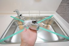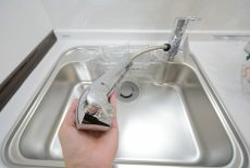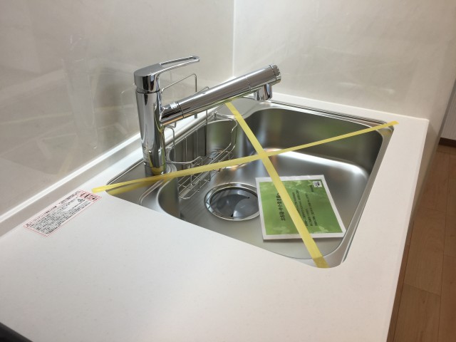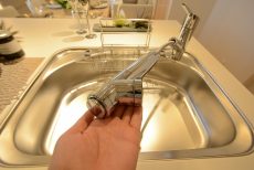 水栓は浄水機能内蔵型です。シャワーヘッドになっているので、シンクの隅々まで水を流すことが出来ます。洗い物の際には特に活躍してくれることと思います。