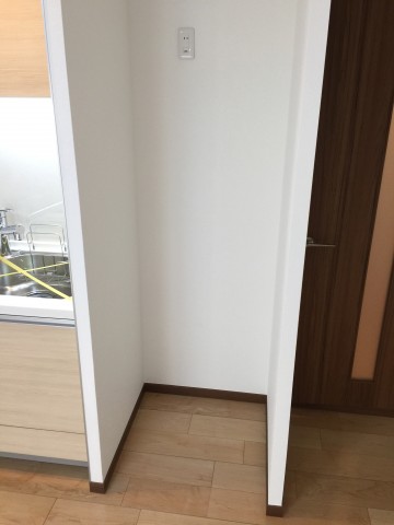 キッチンの左側にキャビネットがありました。電子レンジや炊飯ジャーはこちらへどうぞ(●’∀’●)ノ冷蔵庫置場もしっかり用意されていますので、ご安心を♪♪
