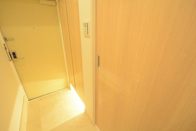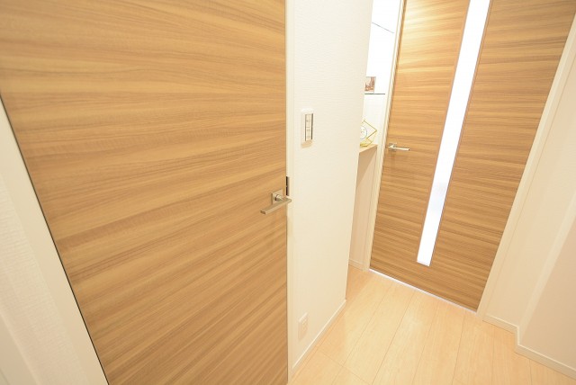 玄関を開けると、 フルリノベーションを終え綺麗に生まれ変わった玄関がお出迎えです☆玄関スペースには人感センサーがついているので、自動でパッと明かりもつきます。荷物を抱えている時など、助かりますね。
