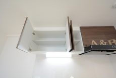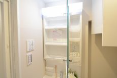 お化粧のし易さも段違いです。ミラーの内部は収納スペースになっているので歯ブラシや基礎化粧品などはコチラに収納しておきましょう!!